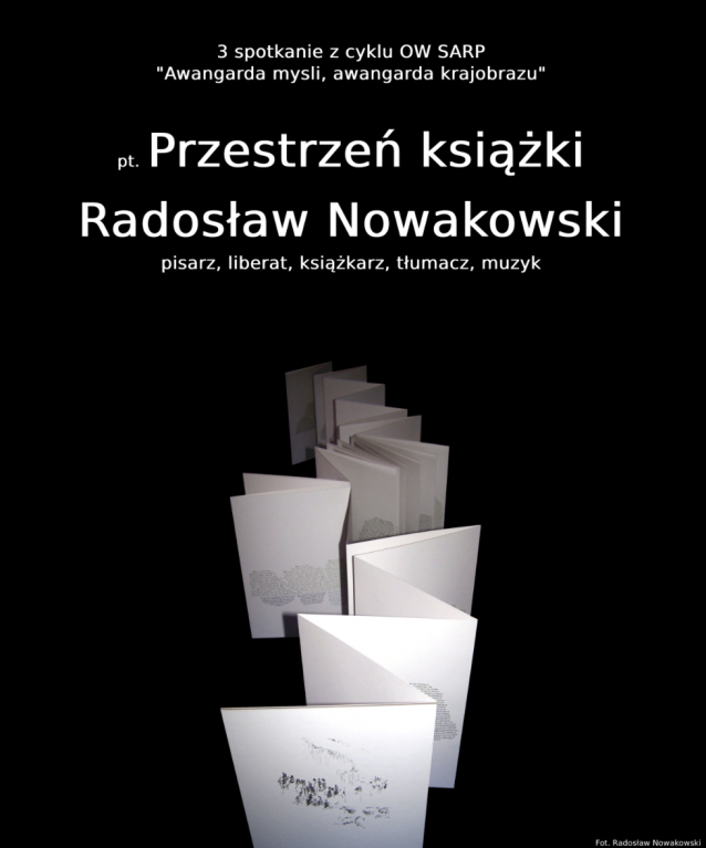 W najbliższy czwartek 9 marca 2023 r. o godzinie 18.00 zapraszamy na trzecie spotkanie z cyklu OW SARP „Awangarda myśli, awangarda krajobrazu” pt: „Przestrzeń książki – Radosław Nowakowski, pisarz, liberat, książkarz, tłumacz, muzyk.