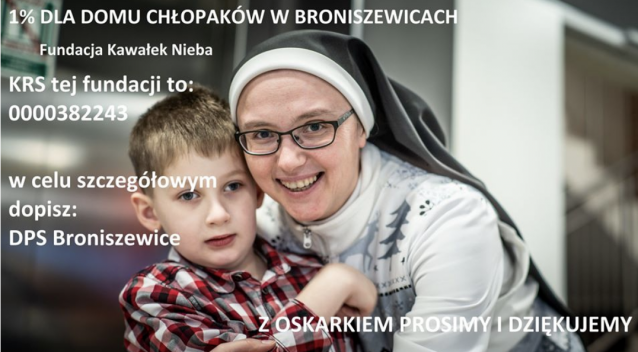 Twój 1% podatku to dla Chłopców w Broniszewicach pieluchy, środki do pielęgnacji, leki, pościele, ubrania i buty w niezliczonej ilości. I ICH WDZIĘCZNOŚĆ I RADOŚĆ