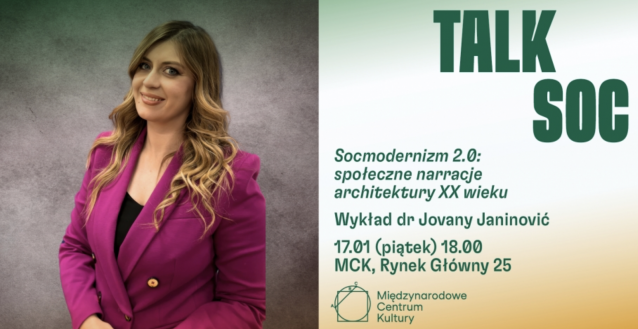 - 17.01.2025 – „Socmodernizm 2.0: społeczne narracje architektury XX wieku – wykład dr Jovany Janinović. W jaki sposób oddolne ruchy w Europie Środkowo-Wschodniej zmieniały narracje wokół socjalistycznej architektury modernistycznej po 1989 roku? Dr Janinović przedstawi, w jaki sposób inicjatywy te negocjowały kwestionowane dziedzictwo, a dzisiaj budują legitymizację i wyrażają sprzeciw wobec zastanych sposobów pamiętania, przyczyniając się do oddolnego budowania dziedzictwa i przekształcając te często niezrozumiane struktury w tętniące życiem zasoby kulturowe lub areny politycznej kontestacji.