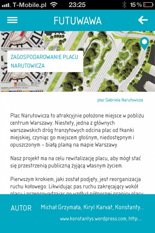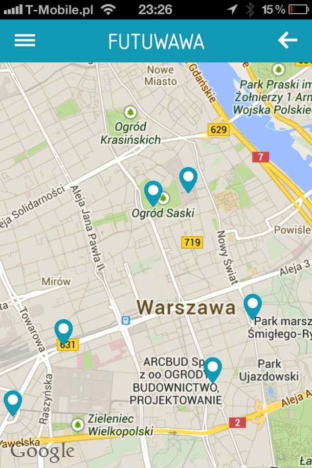 Aplikacja FUTUWAWA prezentuje 400 projektów dla Warszawy przyszłości z zakresu architektury, urbanistyki i sztuki w przestrzeni publicznej.