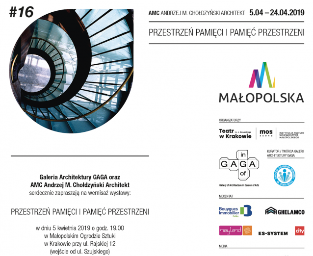 Zaproszamy na wystawę „Przestrzeń Pamięci | Pamięć Przestrzeni” (06.04.2019 o godz. 19:00) jubileuszowej wystawy Galerii Architektury GAGA w Krakowie, której bohaterem będzie Andrzej M. Chołdzyński.