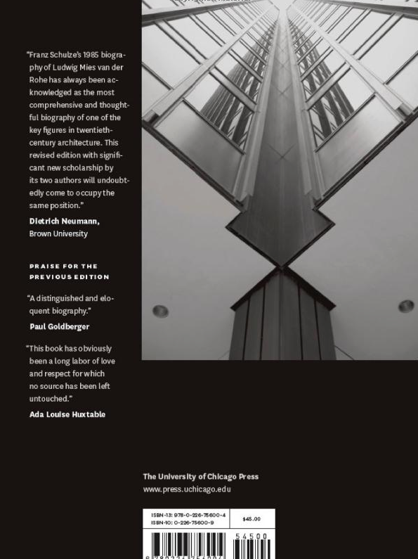 “Franz Schulze’s 1985 biography of Ludwig Mies van der Rohe has always been acknowledged as the most comprehensive and thoughtful biography of one of the key figures in twentieth-century architecture. This revised edition with significant new scholarship by its two authors will undoubtedly come to occupy the same position.”