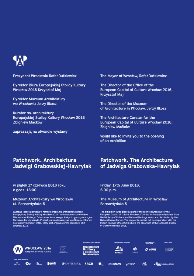 Wystawa Patchwork jest dotychczas największą prezentacją projektów i realizacji Jadwigi Grabowskiej-Hawrylak. Tytuł ekspozycji odnosi się do tekstylnych, geometrycznych kompozycji, których tworzenie jest do dziś jedną z jej największych pozaarchitektonicznych pasji.