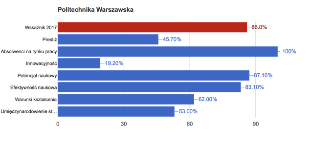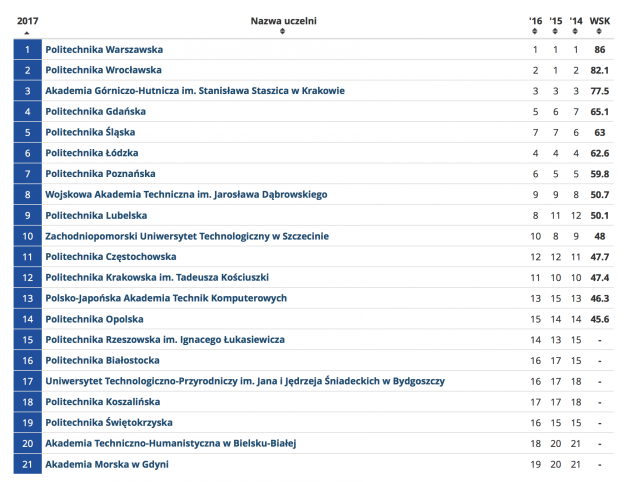 Nieodmiennie od 3 lat w pierwszej trójce: Politechnika Warszawska, Politechnika Wrocławska i Akademia Górniczo-Hutnicza im. Staszica w Krakowie. Szczegóły na załączonym wykresie.