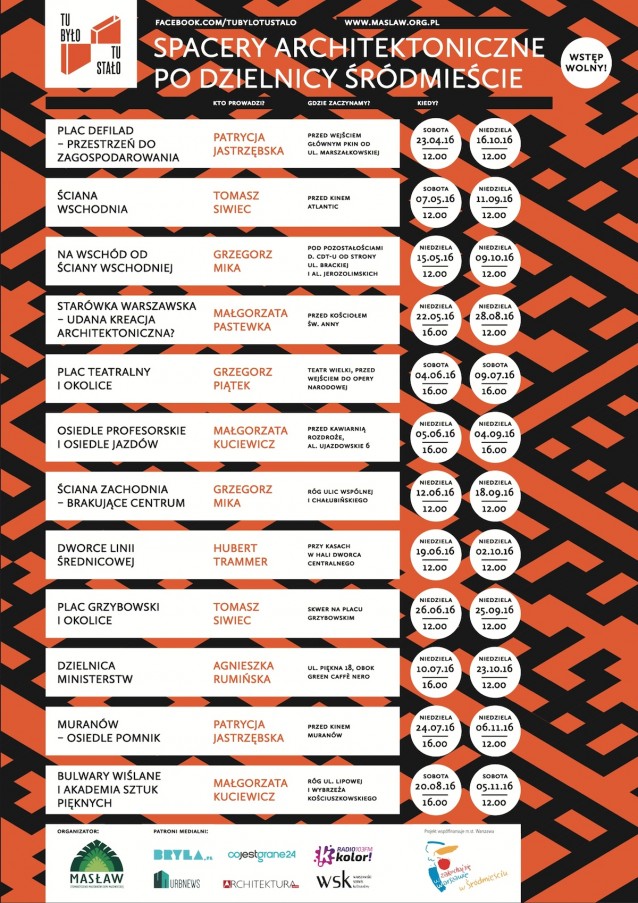 - Wybierzemy się szlakiem warszawskiej architektury, która po 1989 r. ulegała rozmaitym przekształceniom. Motywem przewodnim spacerów są zmiany jakie zaszły po tej dacie w tkance miasta, ale mówić także będziemy o tym, jak wyglądała przedwojenna stolica, porównując z tym co się w niej wydarzyło także po 1945 r. Na spacer warto zabrać trzecią część naszej drukowanej mapy Tu było, tu stało, ponieważ wiele z nich zostało na niej zaznaczone i opisane – mówi Patrycja Jastrzębska, pomysłodawczyni mapy i spacerów, ze Stowarzyszenia Masław i projektu Tu było, tu stało. – Odwiedzimy obiekty odnawiane i rekonstruowane w ostatnich latach, wśród nich te doskonałe i mniej udane realizacje. Wspomnimy również miejsca, które zaznaczyliśmy na dwóch poprzednich mapach, poświęconych znikającej architekturze – dodaje.