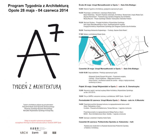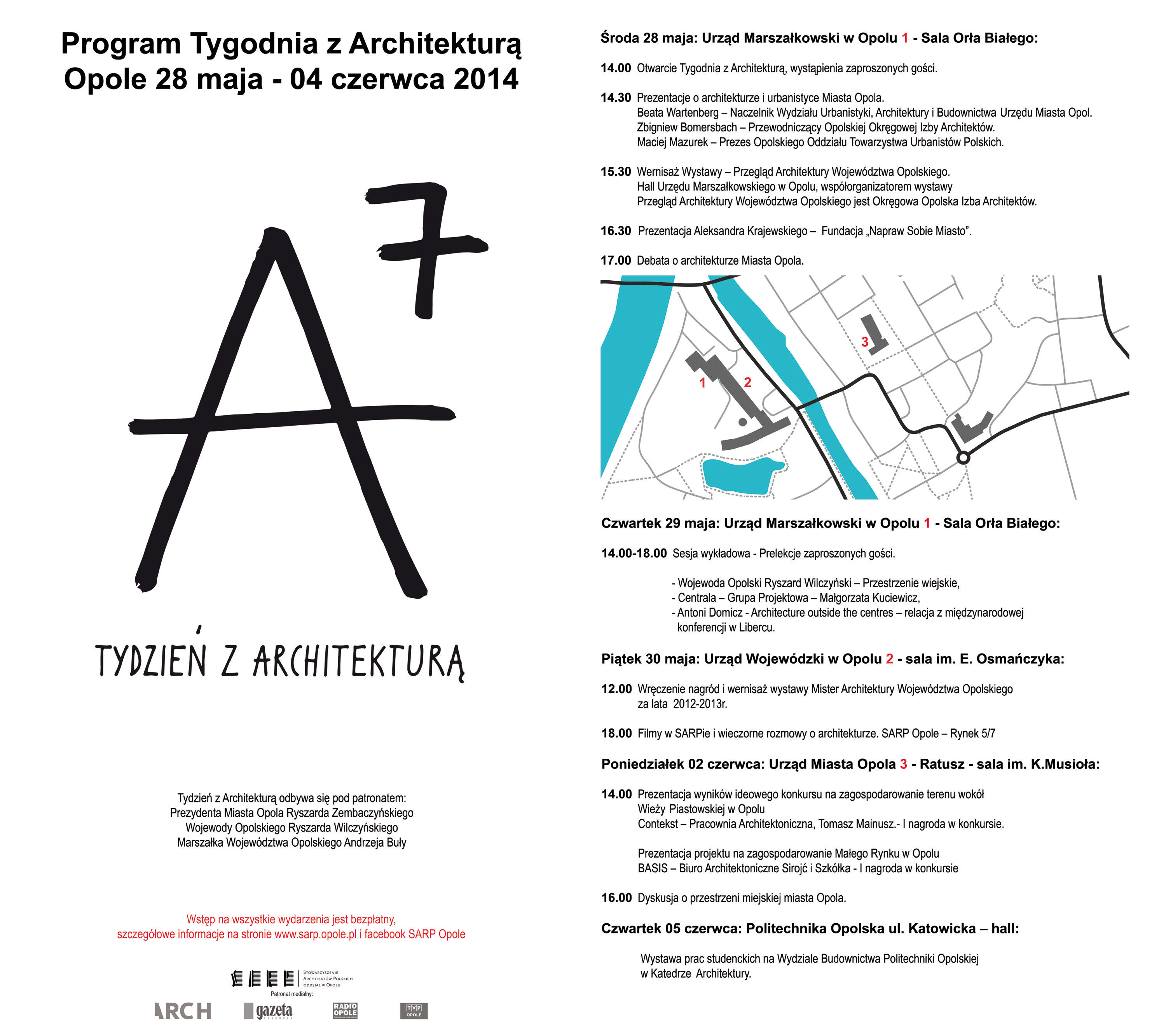 Zapraszamy do wzięcia udziału w “ Tygodniu z Architekturą “, który odbędzie się w Opolu w dniach 28 maja – 04 czerwca 2014 r . Program imprezy w załączniku.