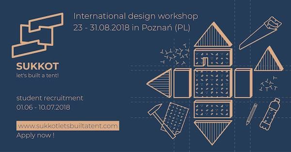 Oddział SARP w Poznaniu zaprasza na drugą edycję interdyscyplinarnych warsztatów Sukkot- let’s built a tent! dla studentów z Polski, Niemiec i Izraela z okazji żydowskiego święta Sukkot. Warsztaty odbędą się od 23 do 31 sierpnia w Poznaniu. W warsztatach weźmie udział 32 studentów kierunków projektowych z Polski, Niemiec oraz Izraela, którzy będą pracować w niewielkich międzynarodowych grupach roboczych prowadzonych przez tutorów – uznanych młodych projektantów. Ich zadaniem będzie zaprojektowanie i samodzielnie wykonanie w ramach określonego budżetu współczesną interpretację tradycyjnego szałasu na żydowskie święto Sukkot.