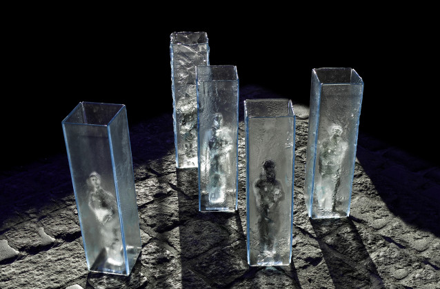 Takie rozwiązanie plastyczne tworzy bryły - wielowymiarowe rzeźby z tajemniczymi szarymi szklanymi postaciami wewnątrz, a przede wszystkim, z niekończącą się grą światła i cienia, oraz subtelnych efektów optycznych, powstających dzięki różnym fakturom, różnicom przeźroczystości i grubości w piecowych szkłach. Postaci ustawione są wewnątrz brył w różnych kierunkach. Zależnie od kąta obserwacji poruszającego się widza, szklane postaci, są mniej lub bardziej widoczne. Symbolicznie uzyskiwany jest w ten sposób efekt ich działalności konspiracyjnej lub też prób wymazywania przez ówczesną władzę.