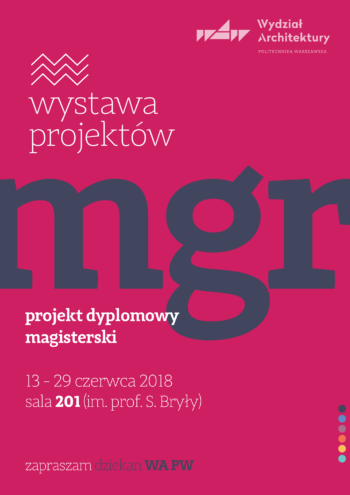 Zapraszamy na wystawę projektów dyplomowych magisterskich Wydziału Architektury Politechniki Warszawskiej.