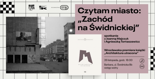 Wydawnictwo EMG oraz Wrocławski Instytut Kultury zapraszają na spotkanie poświęcone „Architekturze utraconej”, czyli dziewiątemu tomowi serii „Architektura jest najważniejsza”.