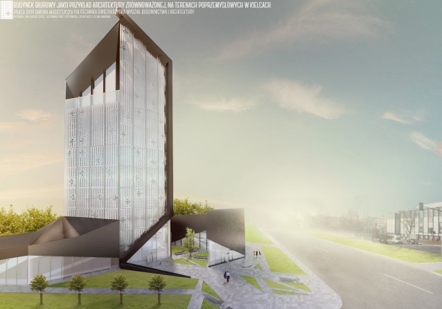 Koncepcja budynku biurowego zaprojektowanego w myśl budownictwa zrównoważonego w Kielcach