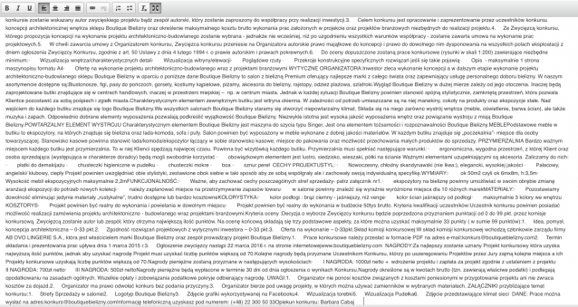 Dodatkowe informacje dostępne są na stronie internetowej konkursu – www.boutiquebielizny.comNazwa konkursu:Konkurs na koncepcję wnętrza sklepu oferującego bieliznę dla kobiet.