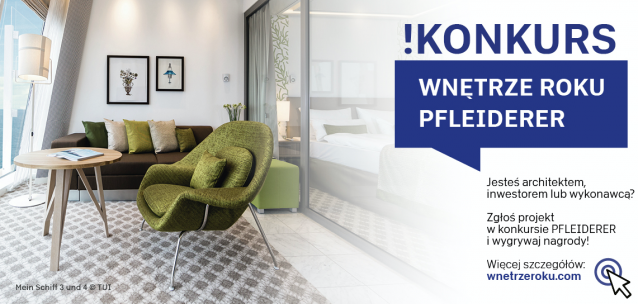 W styczniu wystartowała pierwsza edycja konkursu dla architektów, inwestorów i wykonawców „Wnętrze Roku Pfleiderer 2019”. Realizacje, w których zastosowano materiały Pfleiderer, można zgłaszać do 31 października br. rejestrując je na platformie www.wnetrzeroku.com