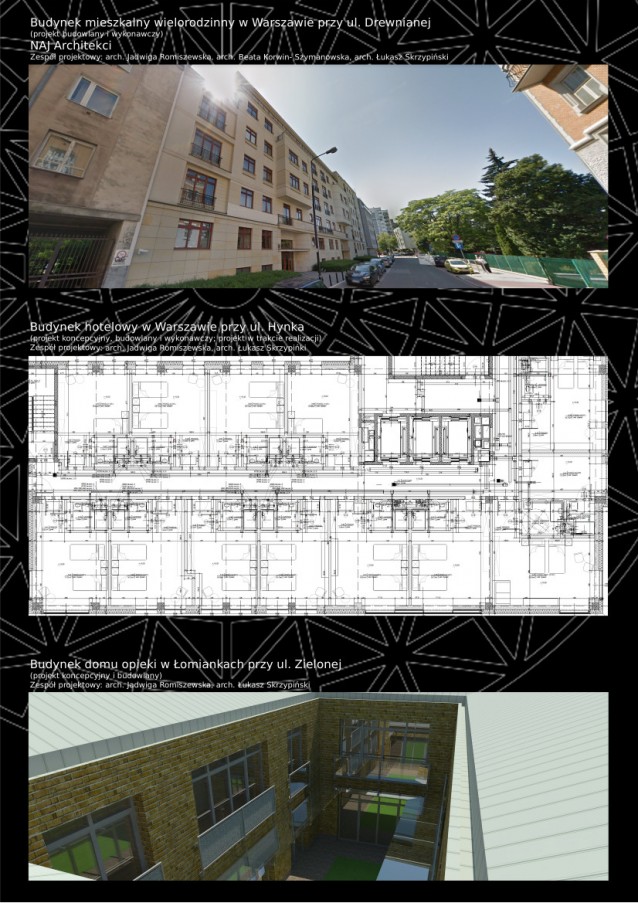 Jestem architektem czynnym zawodowo od 2006 r. Pracowałem przy projektach koncepcyjnych, budowlanych i wykonawczych zabudowy mieszkaniowej, biurowej, przemysłowej i użyteczności publicznej.